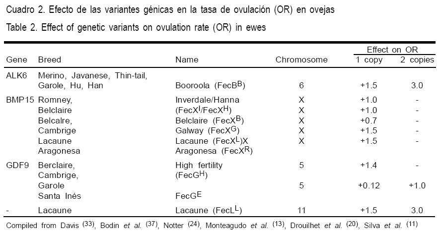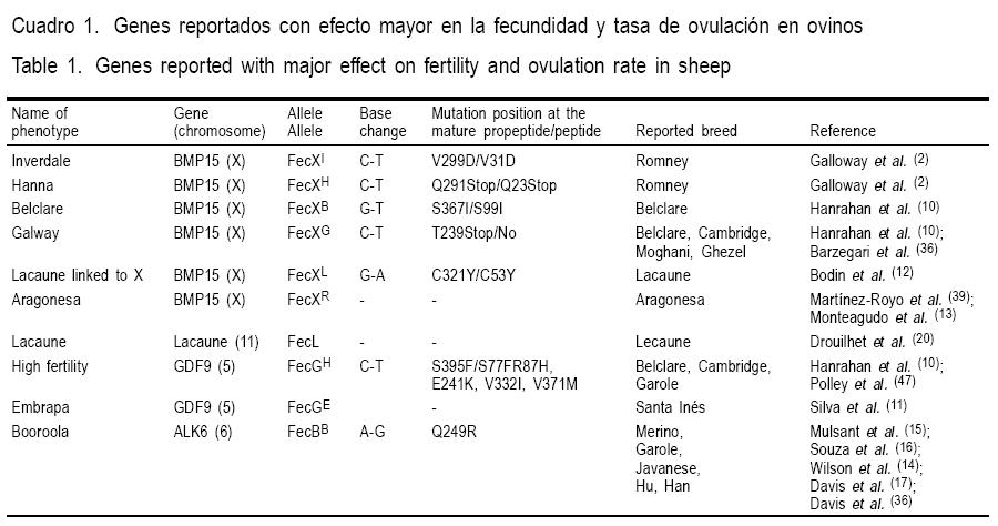 BMP-15), así como de otros genes con efecto mayor, tales como el